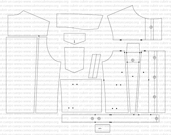 Empezaremos con el cinturón de bajoprenda y la pieza de espalda. Una vez separadas las piezas obtendremos el siguiente diagrama: